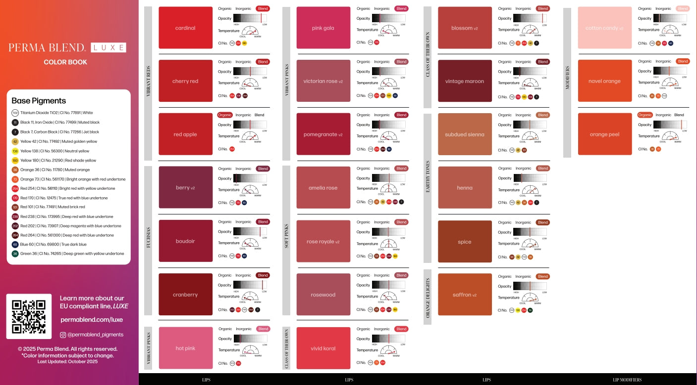 Every batch is tested for consistency and safety, so you never have to worry about nasty additives, or how our colors will show up in your clients’ skin. Ethically made and ethically tested, Perma Blend is certified vegan and cruelty free.