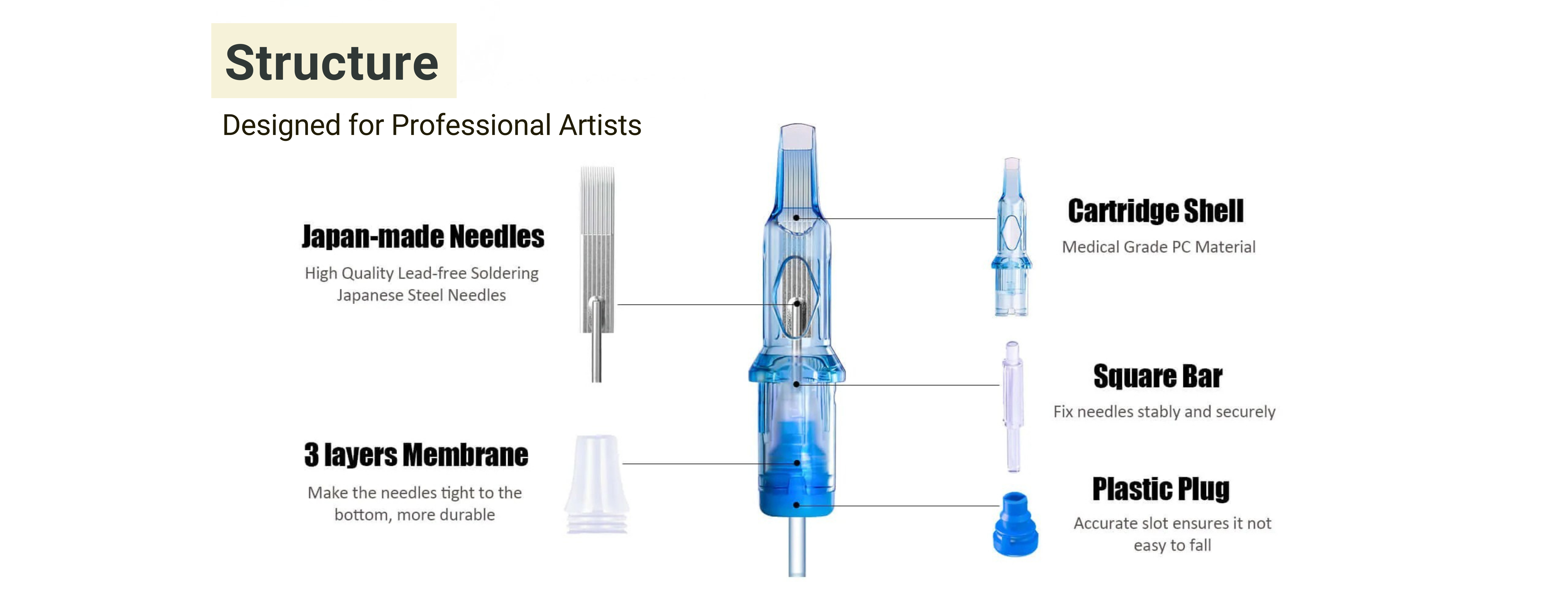- High quality cartridge needles crafted from Japanese stainless steel