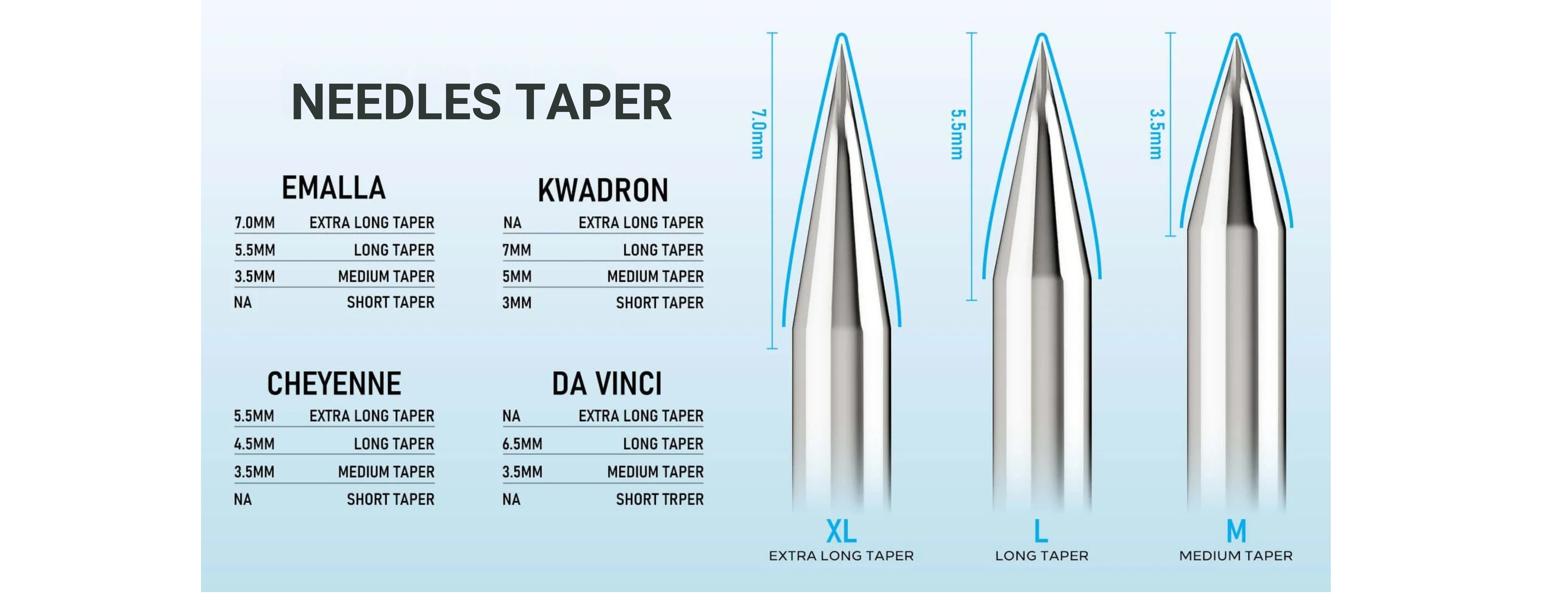 - Straight 12 Gauge (0.35mm) Long Taper (5.5mm)